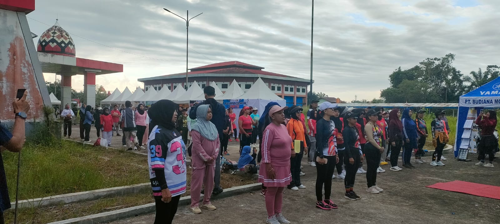 Suasana riuh penuh semangat terasa sejak pagi. Musik senam mengiringi gerak kompak para peserta, sementara di sisi lain, deretan stan UMKM menawarkan aneka produk lokal dari makanan khas hingga kerajinan tangan.