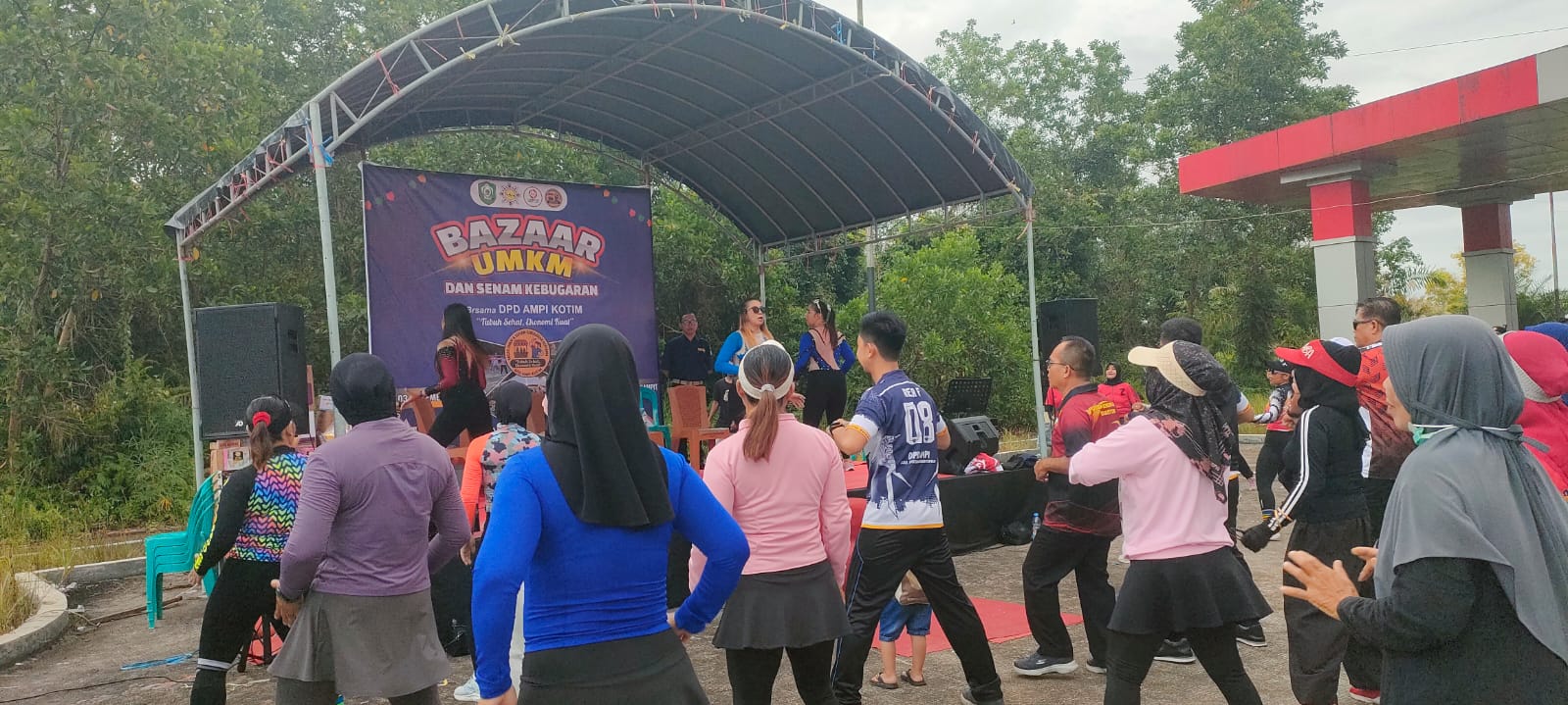 Suasana riuh penuh semangat terasa sejak pagi. Musik senam mengiringi gerak kompak para peserta, sementara di sisi lain, deretan stan UMKM menawarkan aneka produk lokal dari makanan khas hingga kerajinan tangan.