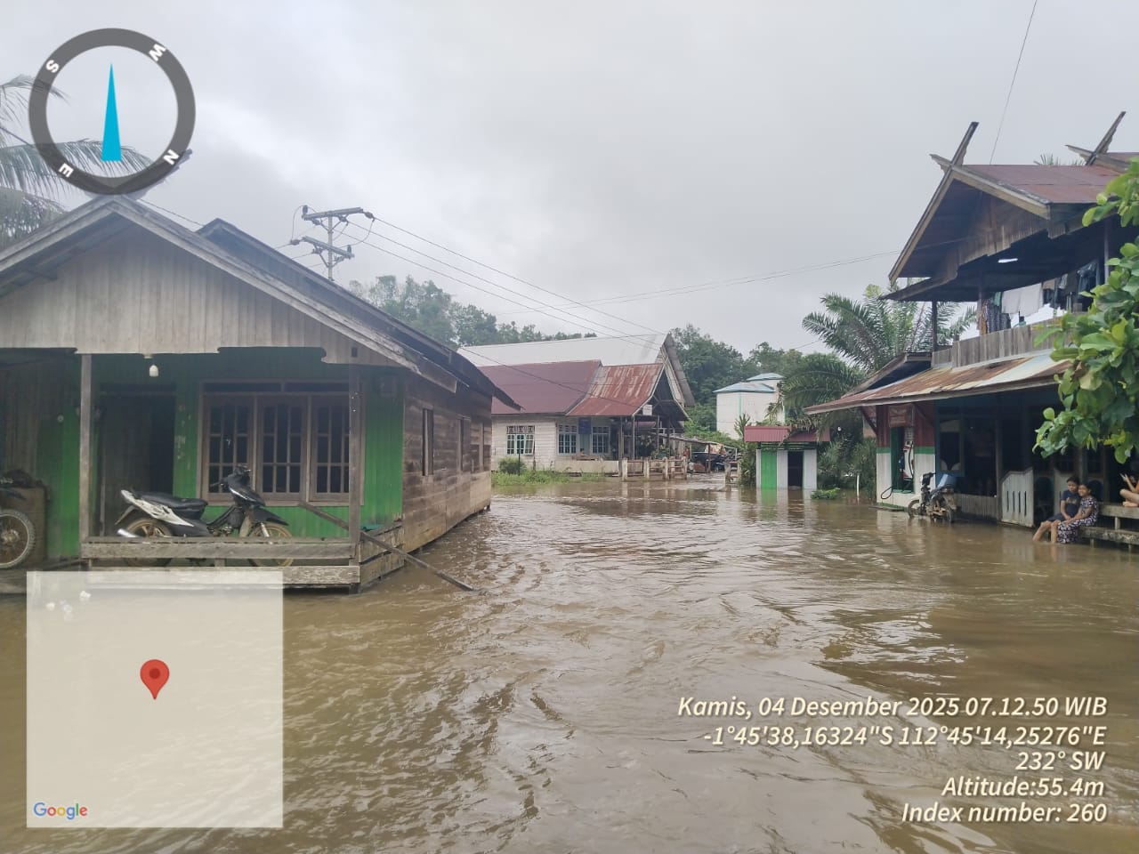 Sebelumnya, banjir lebih dulu menggenangi Desa Tumbang Mujam, di mana tinggi air meningkat dari 49 cm menjadi 60 cm hanya dalam beberapa jam pada Kamis (4/12). Kenaikan disebabkan hujan lebat di hulu Sungai Tualan. Data PCH BWS Kalimantan II mencatat curah hujan tinggi: