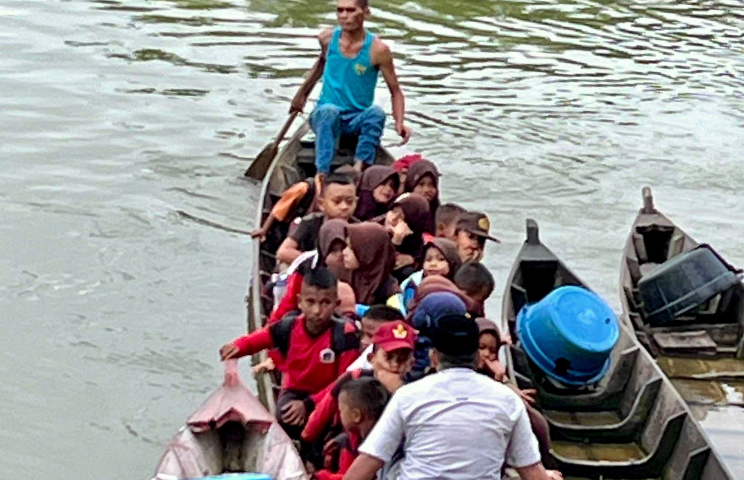 Kini, warga kembali ke situasi lama. Sampan sederhana kembali jadi jembatan rapuh, mengantar anak-anak sekolah dengan doa di setiap kayuhan.