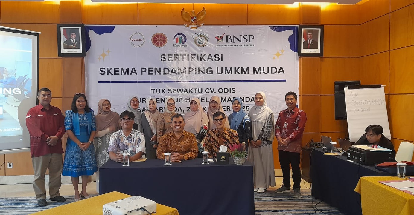 Samarinda, 23 Oktober 2025 — Suasana penuh semangat dan profesionalisme tampak di ruang pertemuan Hotel Puri Senyiur Samarinda, ketika puluhan dosen Universitas Mulawarman mengikuti Sertifikasi Skema Pendamping UMKM Muda yang digelar oleh CV. ODIS bekerja sama dengan Lembaga Sertifikasi Profesi (LSP) Manisku Mandiri.