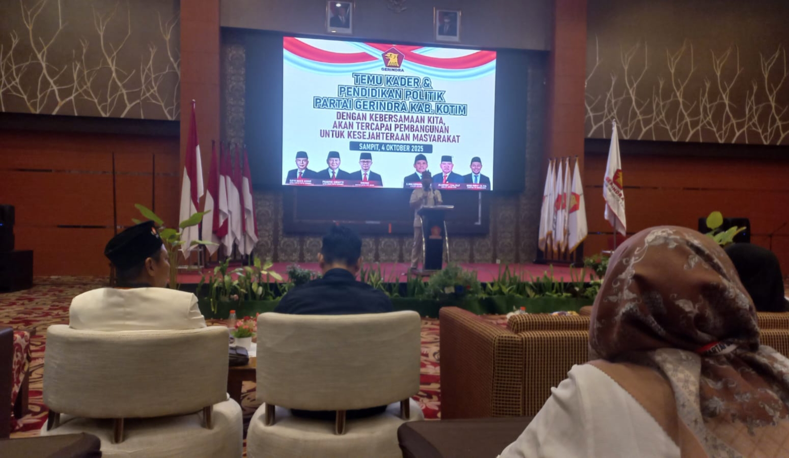KOTIM– Usai hiruk-pikuk Pemilu dan Pilkada, mesin politik Partai Gerakan Indonesia Raya (Gerindra) di Kabupaten Kotawaringin Timur (Kotim) kembali dipanaskan. Ratusan kader berkumpul di Ballroom Hotel Aquarius Sampit, Sabtu (4/10/2025), dalam agenda Temu Kader dan Pendidikan Politik.