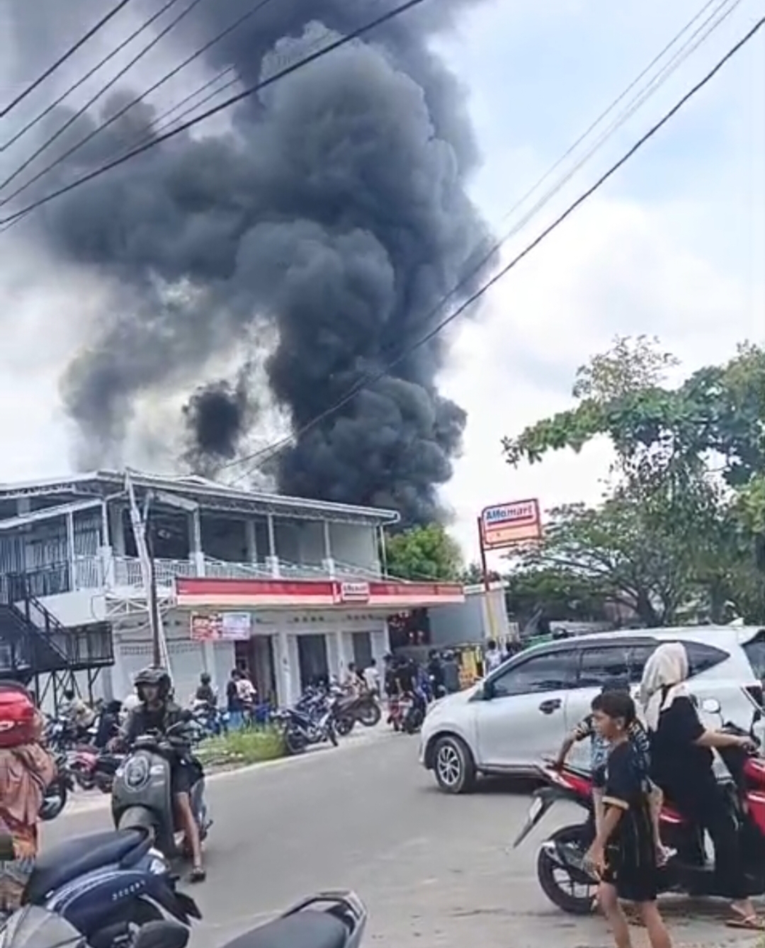 Berdasarkan pantauan dilokasi tampak api membesar disertai suara warga yang panik menyaksikan kejadian tersebut.