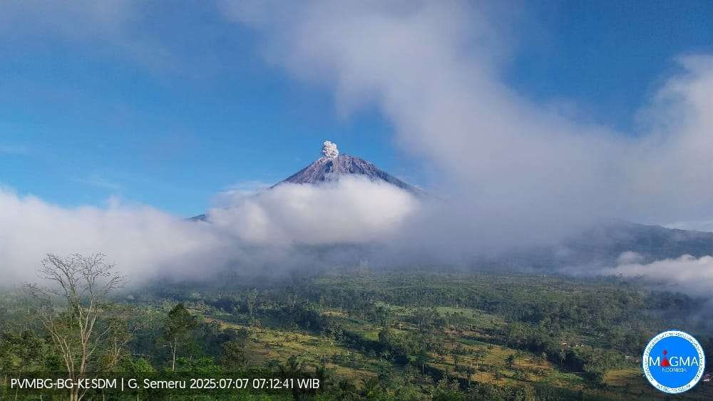 Indoborneonews,Jakarta – Gunung Semeru yang berada di perbatasan Kabupaten Lumajang dan Malang, Jawa Timur kembali erupsi pada hari Senin (7/7/2025) pukul 07:11 WIB. Erupsi terpantau dengan tinggi kolom letusan teramati ± 600 meter di atas puncak (± 4276 meter di atas permukaan laut).