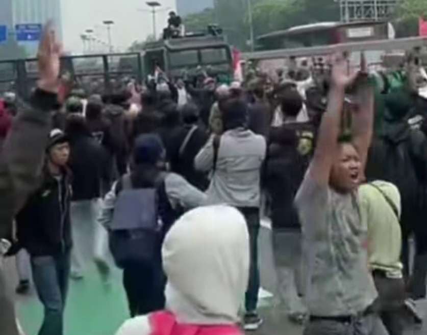 Kapolres Metro Jakarta Pusat, Kombes Pol Susatyo Purnomo Condro telah mengimbau massa agar mundur dan tidak merusak fasilitas umum. Sebelum akhirnya terdengar bunyi tembakan gas air mata.