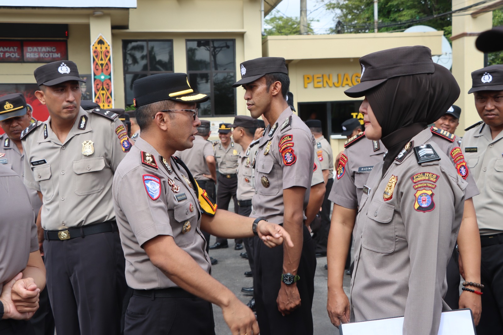 Waka Polres Kotim Pimpin Pemeriksaan Kelengkapan Seragam Polisi di Halaman Mako Polres